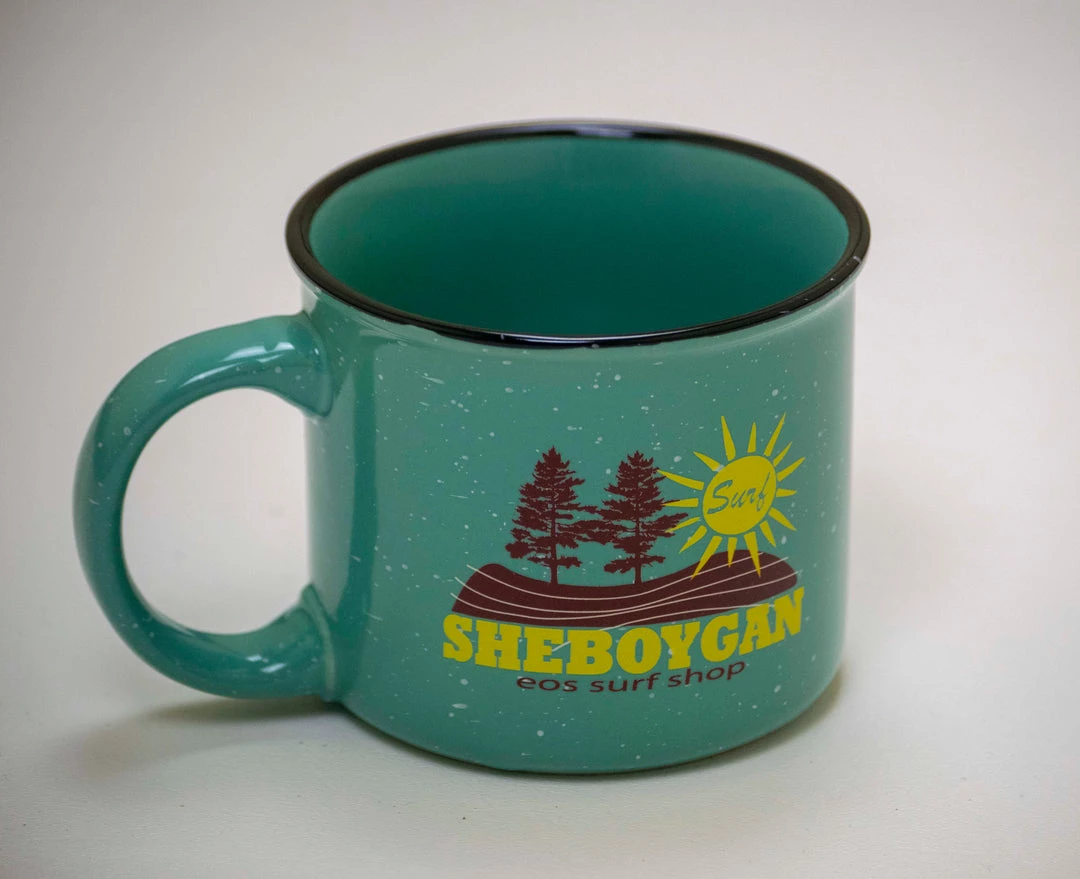15oz ceramic mug with Surf Sheboygan logo on both sides for right and left hand drinkers.