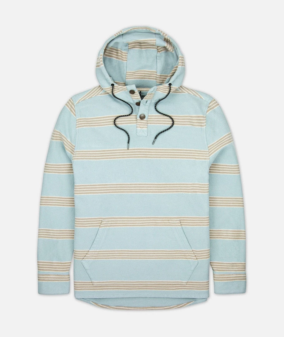 Your favorite fall blanket converted into a Baja style hoodie. The Quintin Hoodie boasts a super-heavy weight, chunky twill woven yarn. Features a 3-button Henley neck, drawstring hood, kangaroo pocket, and streamlined labeling. Available in 5 colorways designed at Jetty HQ.