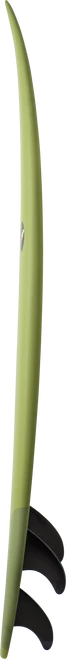 – The flatter rocker and added width catches waves easily and generates speed combined with a pulled in round tail for bite and hold through rail turns and in steeper waves.