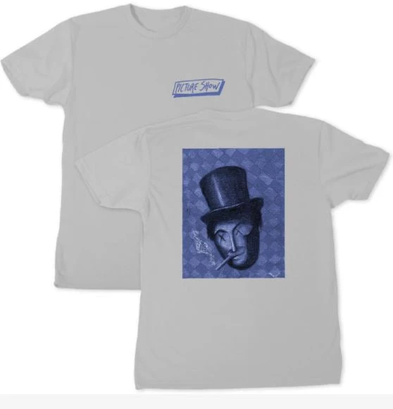 The Parlour Tee from Picture Show features a PS Script logo at the left chest and a back print of original art on a white tee.