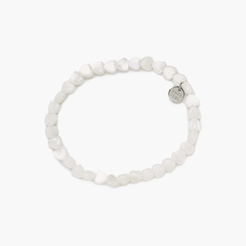Slip on something extra pretty with our Mother of Pearl Heart Stretch Bracelet. This easy-on-and-off design features a continuous band of heart-shaped Mother of Pearl beads, for a super-femme style that’s practically made for stacking.