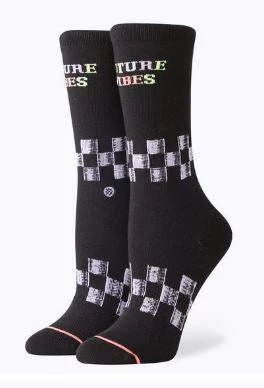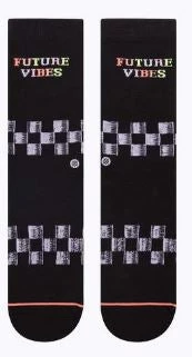 Jump into the DeLorean and gun it to 80 with Future Vibes. With a racing flag design and “future vibes” inscribed on each sock, this pair will keep you looking fine as you travel through time.