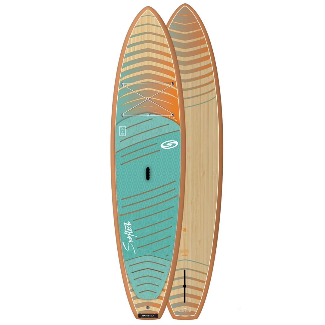 The Aleka/Tuflite V-Tech is the perfect board for any paddler that wants to do it all. Joe BARK shaped the Aleka to be stable enough for flat-water cruising plus it still performs well in small to medium surf. The Tuflite V-Tech utlizies a molded bamboo micro-sandiwch construction, quality fiberglass with epoxy and GreenPoxy bio-resin for durability and weight reduction, and includes a 3/4 thermal debossed Bloom™ foam deck pad, deck tie-downs, ledge handle, and rear padded handle.