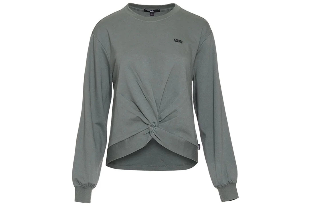 The Vans Vista Knotty Sweatshirt is a lightweight long sleeve with a twisted front hemline, dropped shoulders, ribbed trim and logo detail at the left chest.