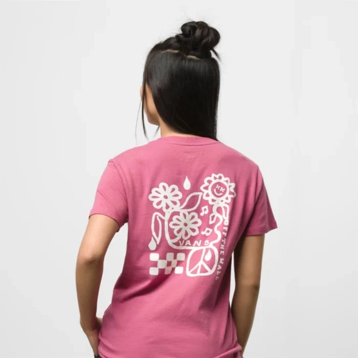 The Audience BFF Tee is a heavy 100% cotton jersey t-shirt with short sleeves, left chest and back graphics, and a BFF fit. Model is 5 feet 9 inches tall and wearing a size Small