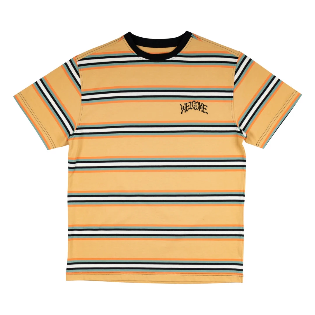 6.0 oz striped knit tee with Droop logo embroidery at left chest and contrast neck ribbing